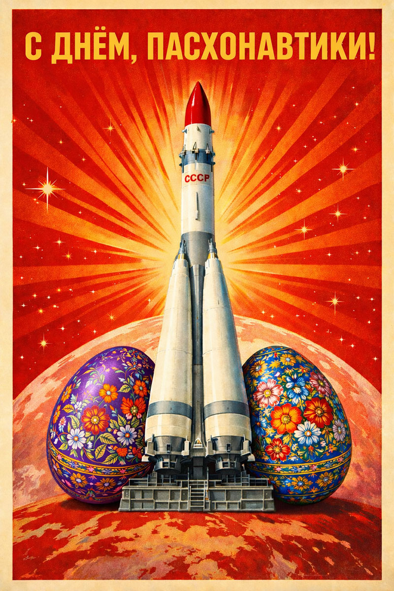 По поводу совпадения Пасхи и Дня Космонавтики накреатИИвила плакат.
