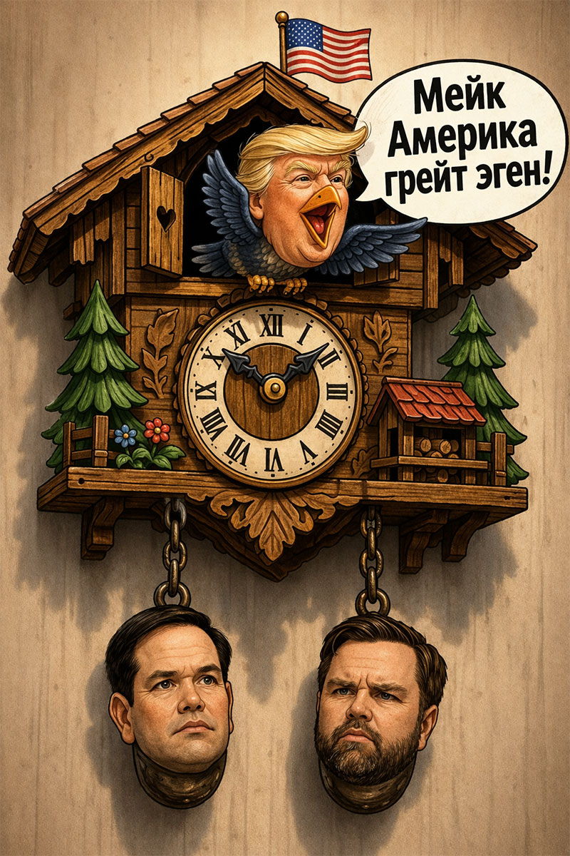 Прямо даже жаль, что нет таких часов с кукушкой. Шоб гирьки — из Вэнса и Рубио, а каждый час оттуда вылетал Трамп и: «Мейк Америка грейт эген!»