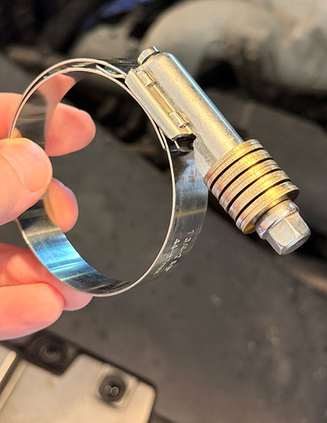 В принципе, конечно, можно было взять и тупо прикрутить шланг обычным червячным хомутом — но очень не хотелось. Червячный хомут зажимается намертво и держит в одном положении. А радиатор у нас живёт насыщенной, богатой на изменения жизнью: “горячо — холодно — горячо — холодно”, то есть постоянно расширяется и сужается. Обычный хомут после таких циклов постепенно теряет натяжение: резина шланга размягчается, потом чуть усаживается — и соединение снова начинает подтекать.
