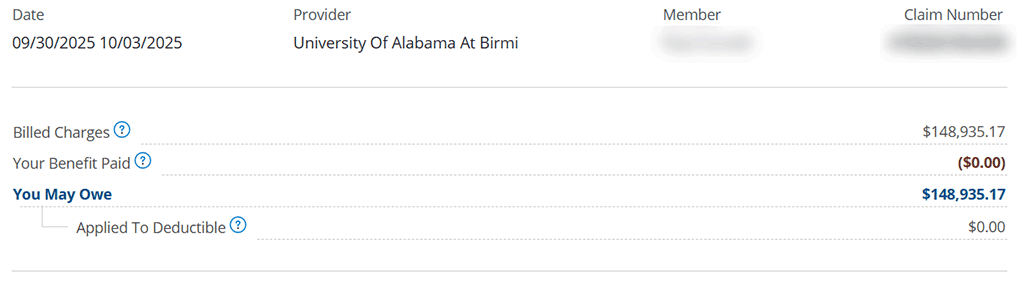 UPDATE: Слава Асклепию, разобрались вроде. Дохтур меня в госпитале продержал на один день позже, чем было указано в предварительном разрешении от страховой (insurance coverage pre-approval letter), и “дата не совпала”.