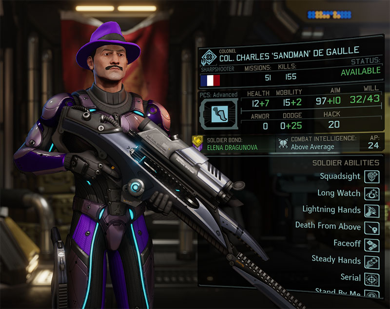 Вот, например, один из моих солдат — прекрасный снайпер родом из Франции, который был без лишних раздумий назван Шарлем де Голлем.
